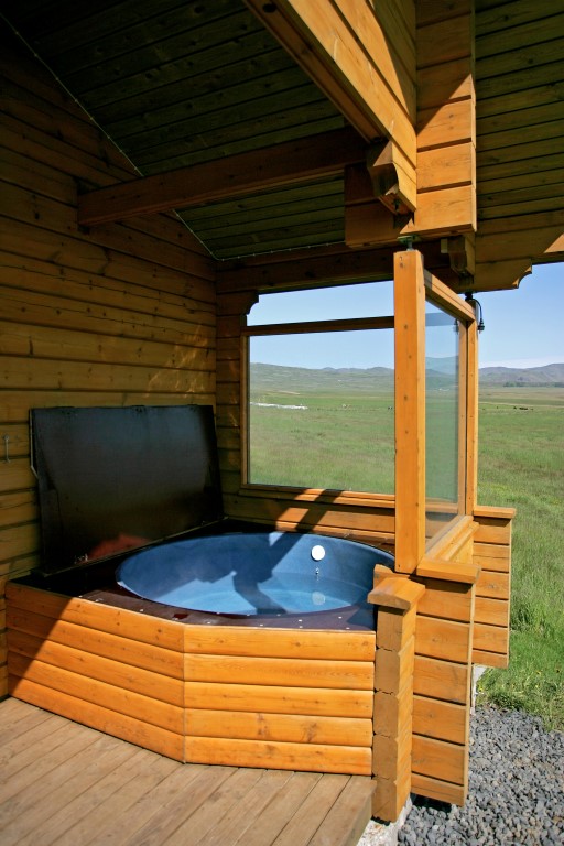 Fully equipped cottage with kitchenette, a bathroom with shower and a porch with a hot tub and barbeque. Min. stay is 2 nights